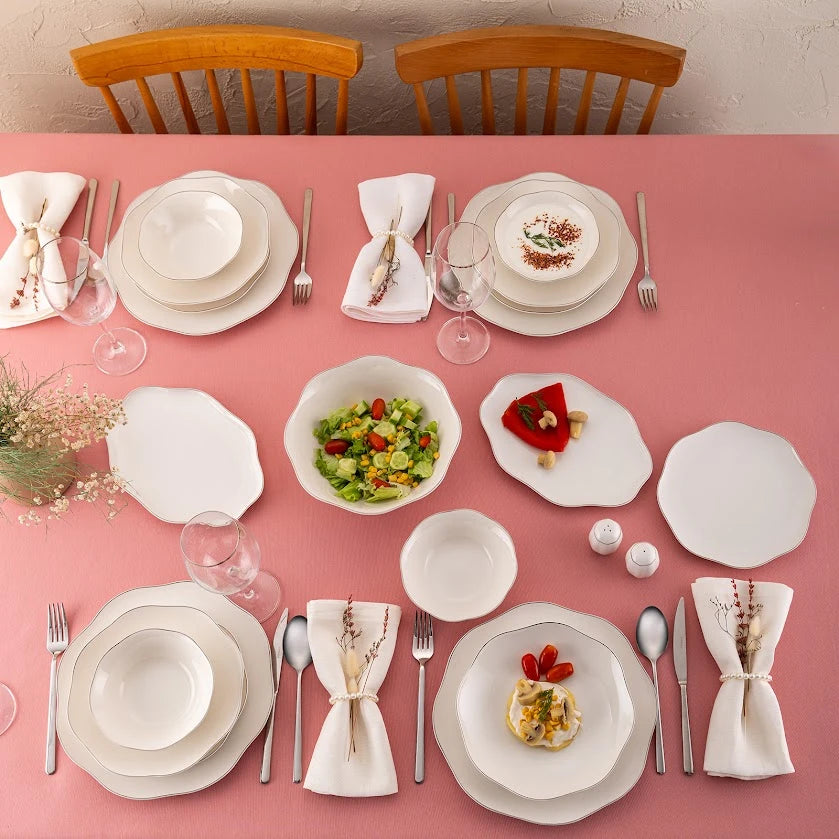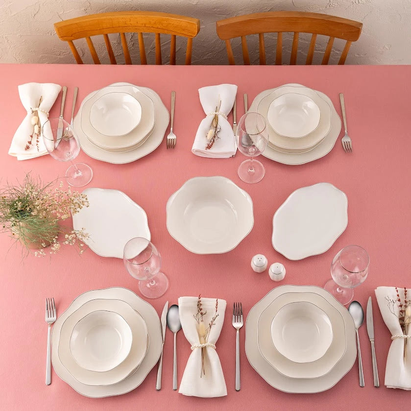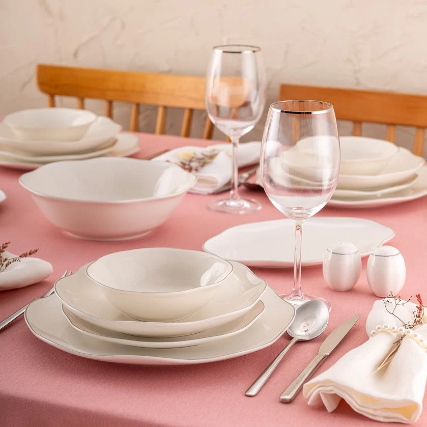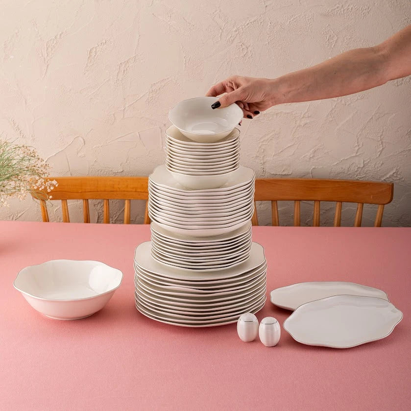 Emsan Lotus 53 Piece Dinner Set for 12 People Platinum