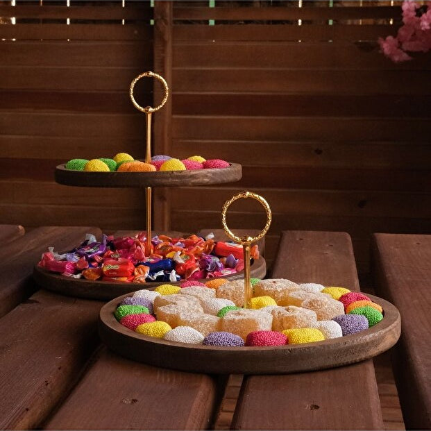 Handcrafted Wooden Presentation Stand with Gold Details 2 Piece Set