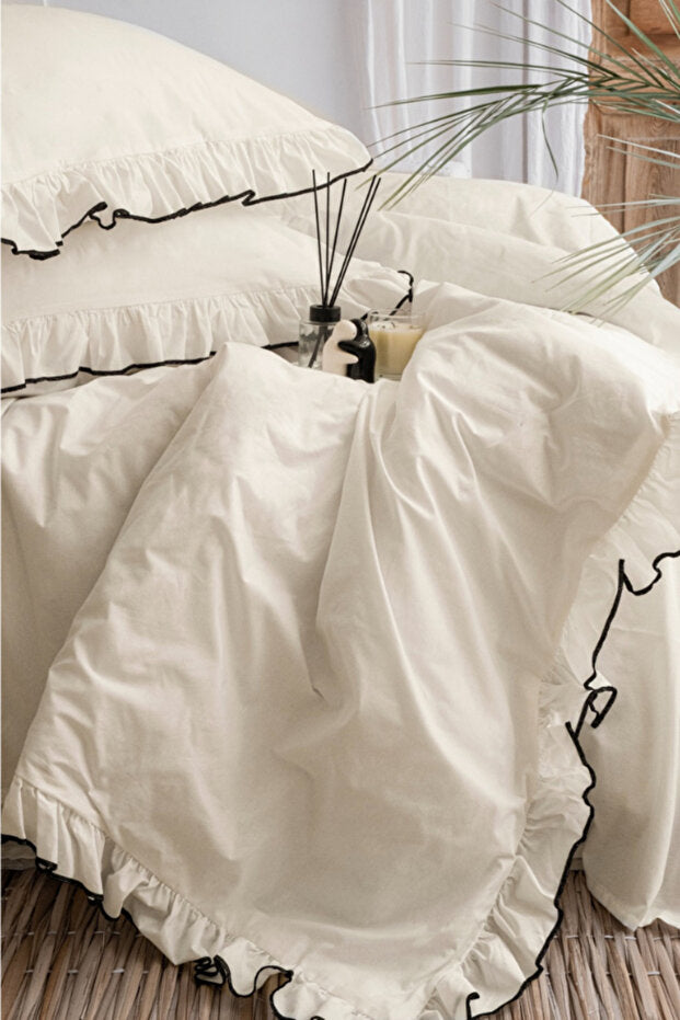 Noir Ruffle Overlock 100% Cotton Duvet Cover Set