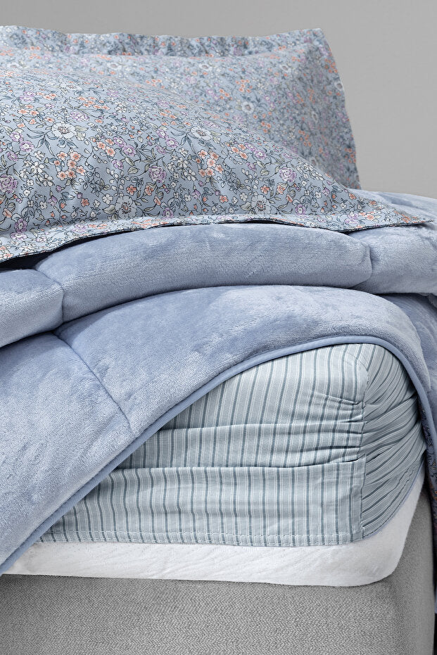 Offering a modern and stylish design with its elegant floral patterns and pastel color combination, the Piante Triola Set brings the ideal comfort of 100% Cotton fabric quality to bedrooms with 3 different color options.