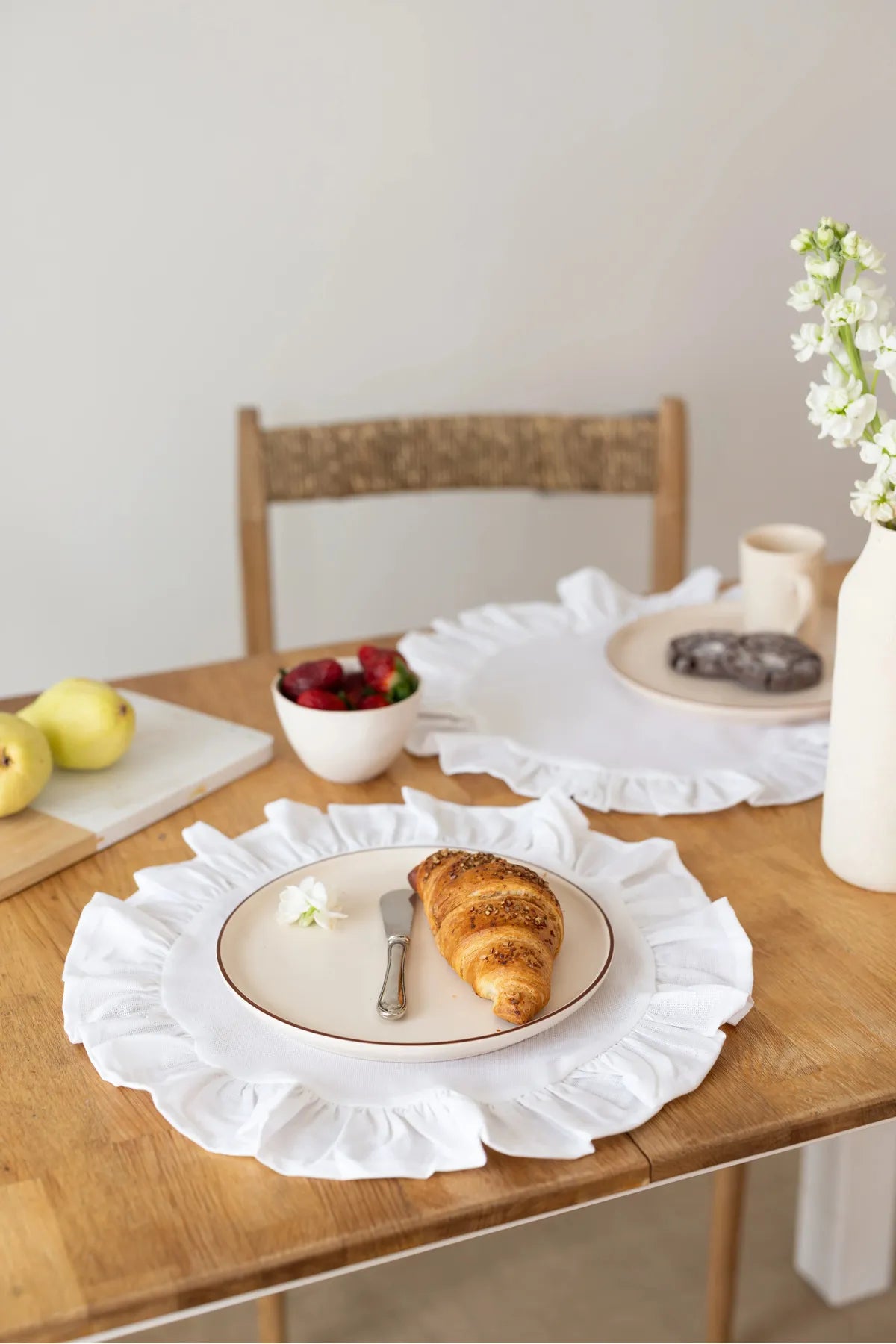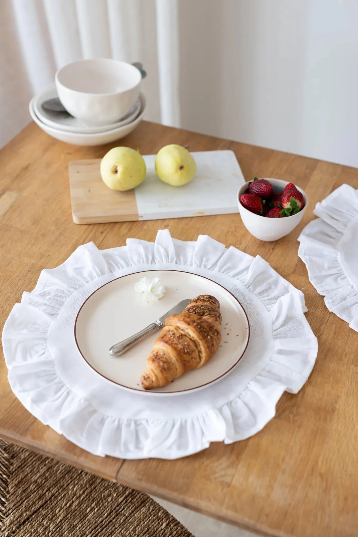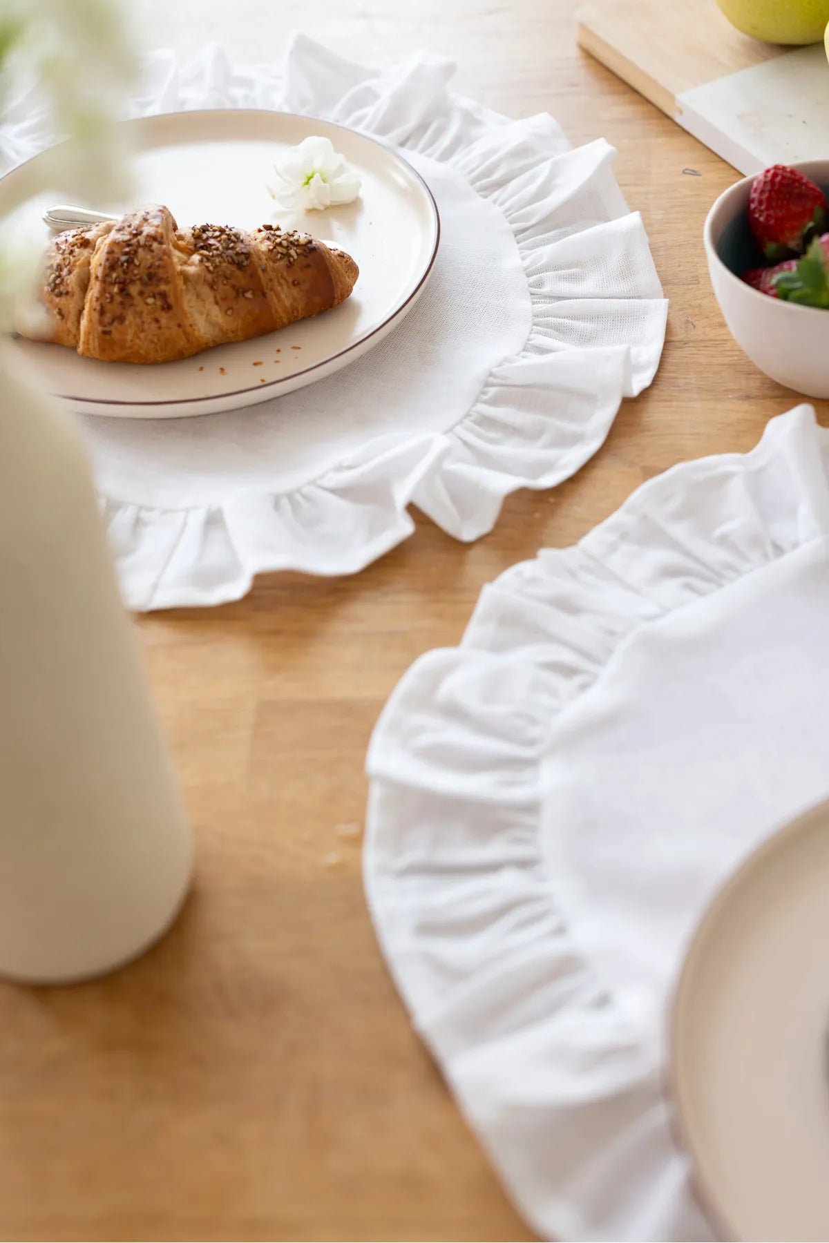 Ruffle 6 Piece Linen Round Placemat American Service 40cm