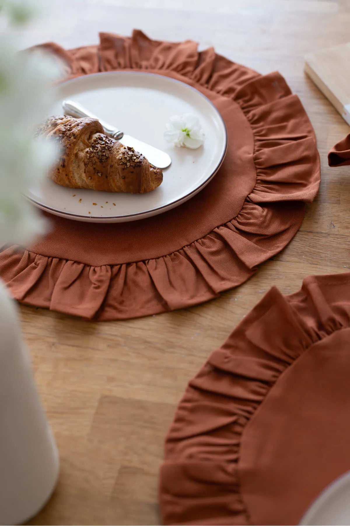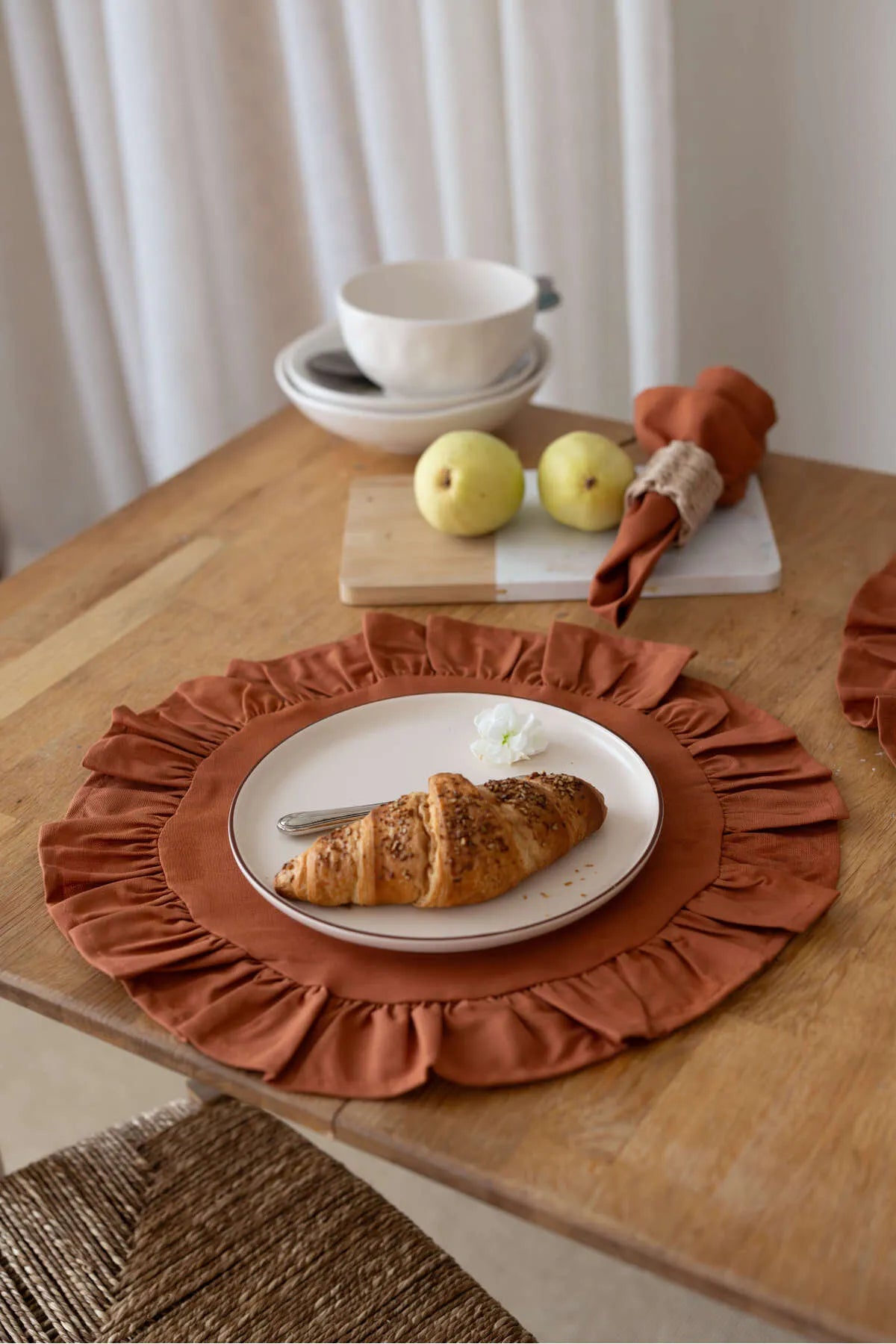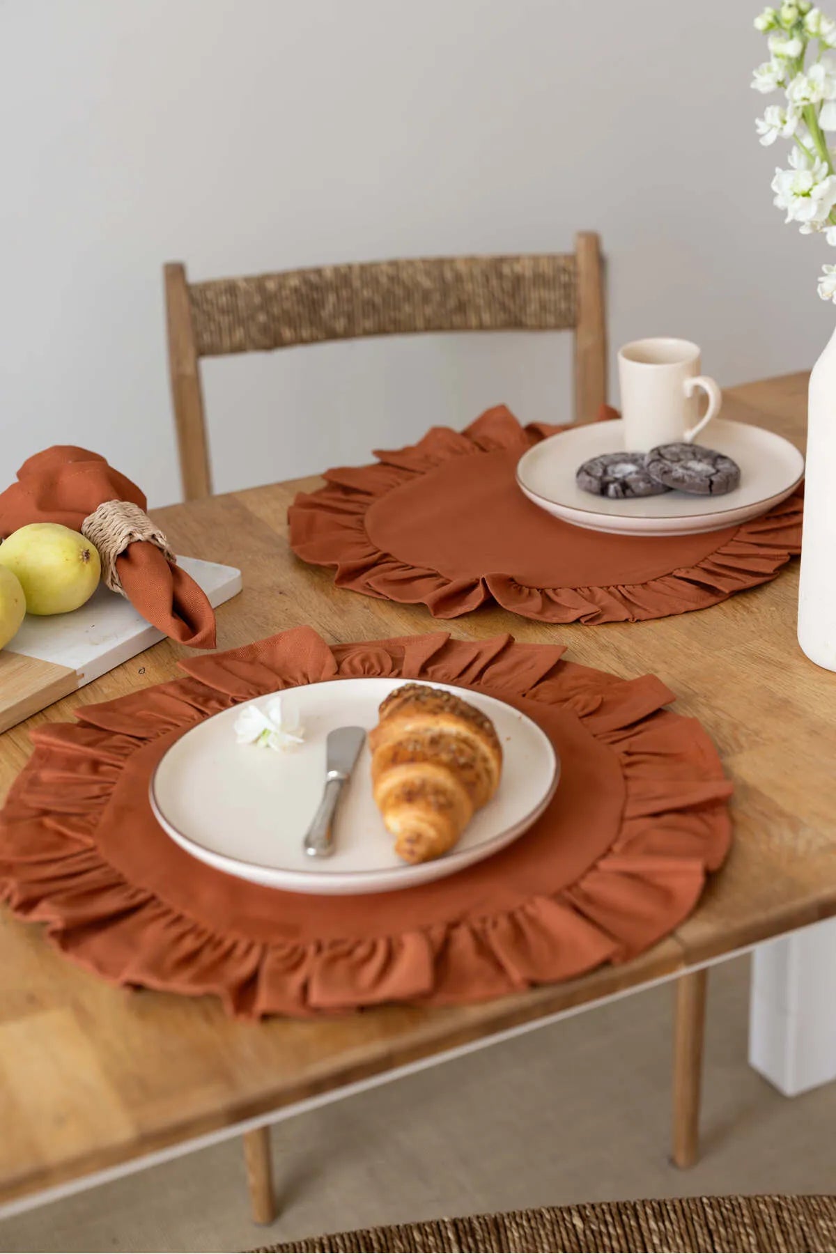 Ruffle 6 Piece Linen Round Placemat American Service 40cm
