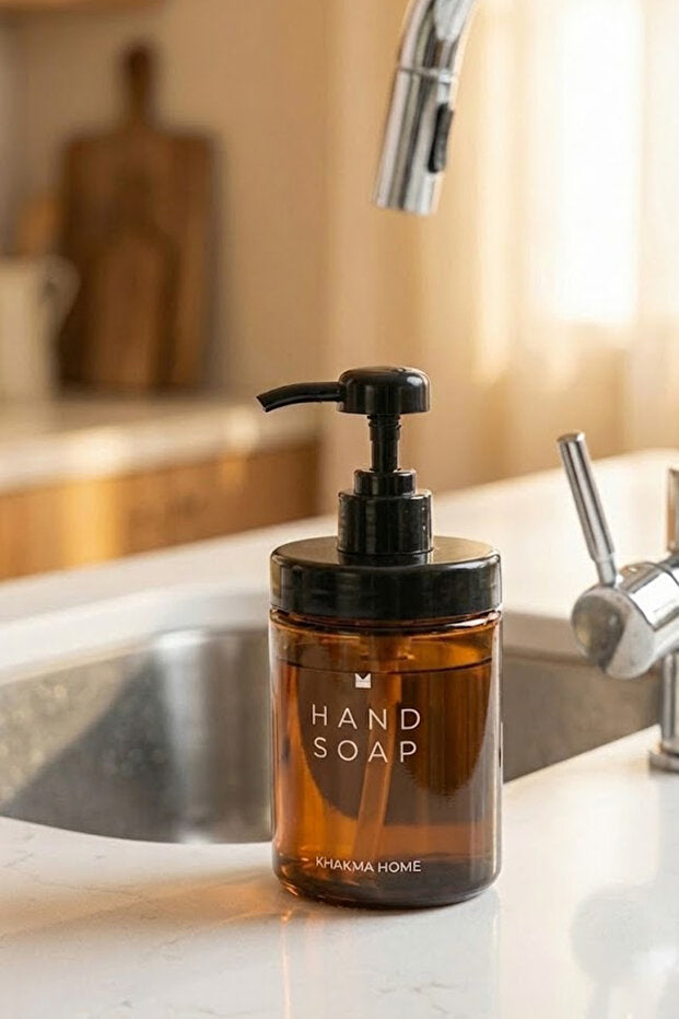 This 250ml amber glass dispenser combines order and elegance on your kitchen counter, allowing you to use your dishwashing detergent in a controlled and hygienic way. The amber glass body softens the light, and its minimalist form effortlessly blends into modern kitchens.