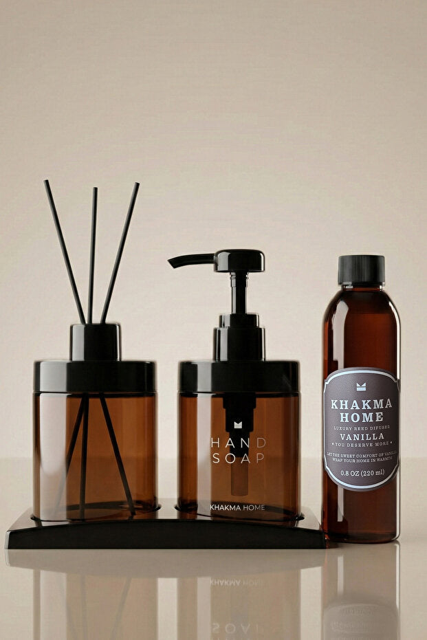 Complete Decoration Solution: The set includes 1 liquid soap dispenser, 1 reed diffuser bottle, and 1 vanilla refill bottle.