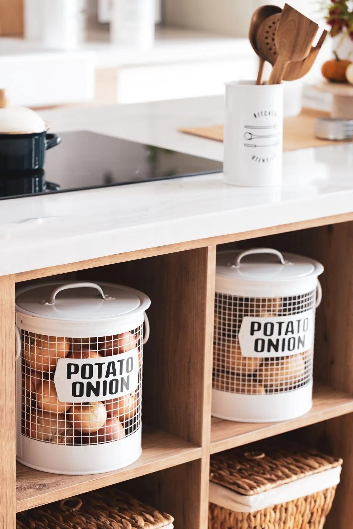 - The set includes two buckets, ideal for storing both your potatoes and onions separately.