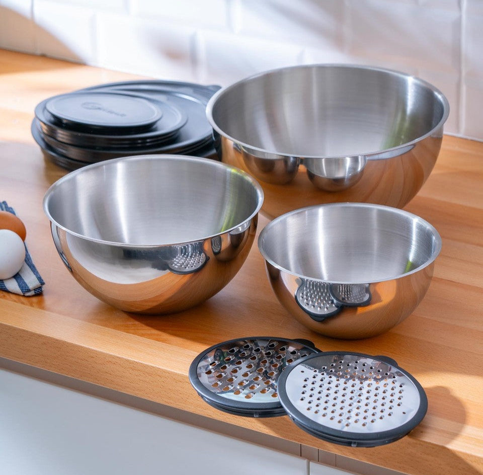Karat Steel 9 Piece Grater Mixing Bowl - 16/20/24 cm