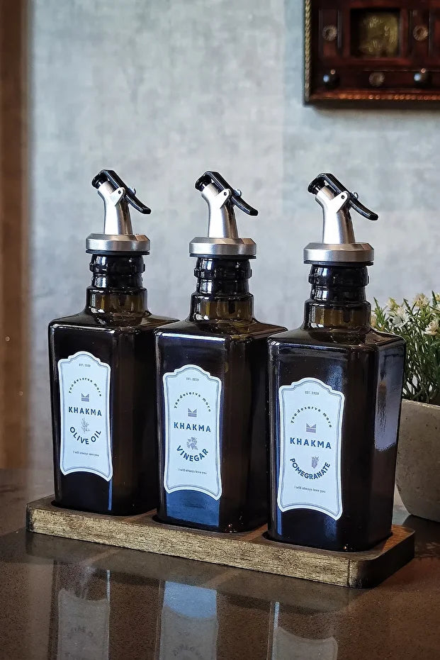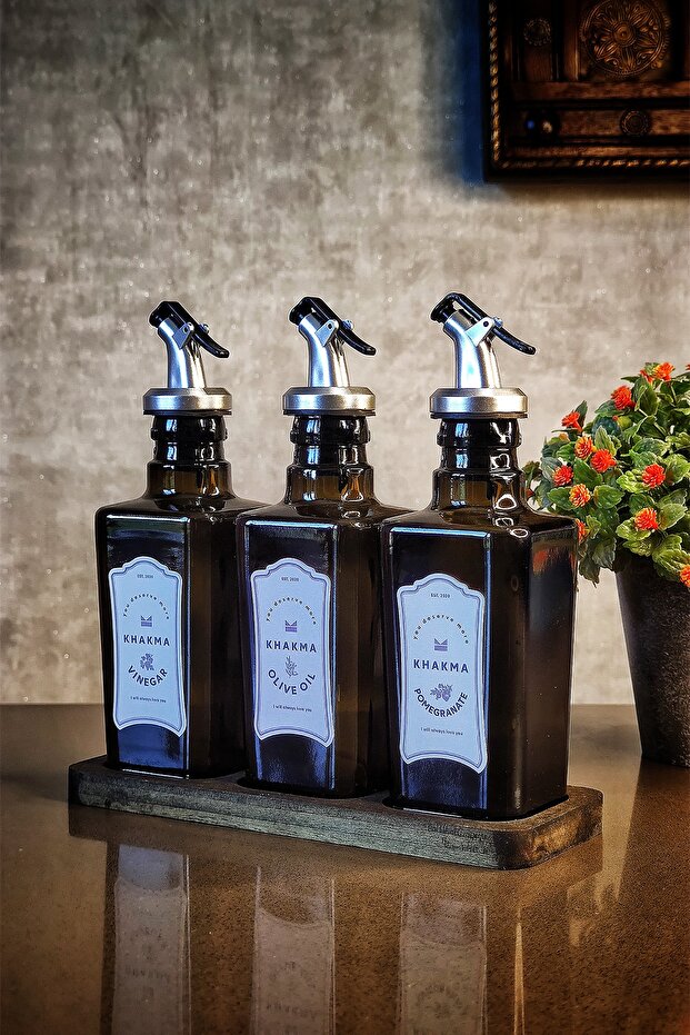 Wooden Stand Black Amber 3 Piece Italian Olive Set