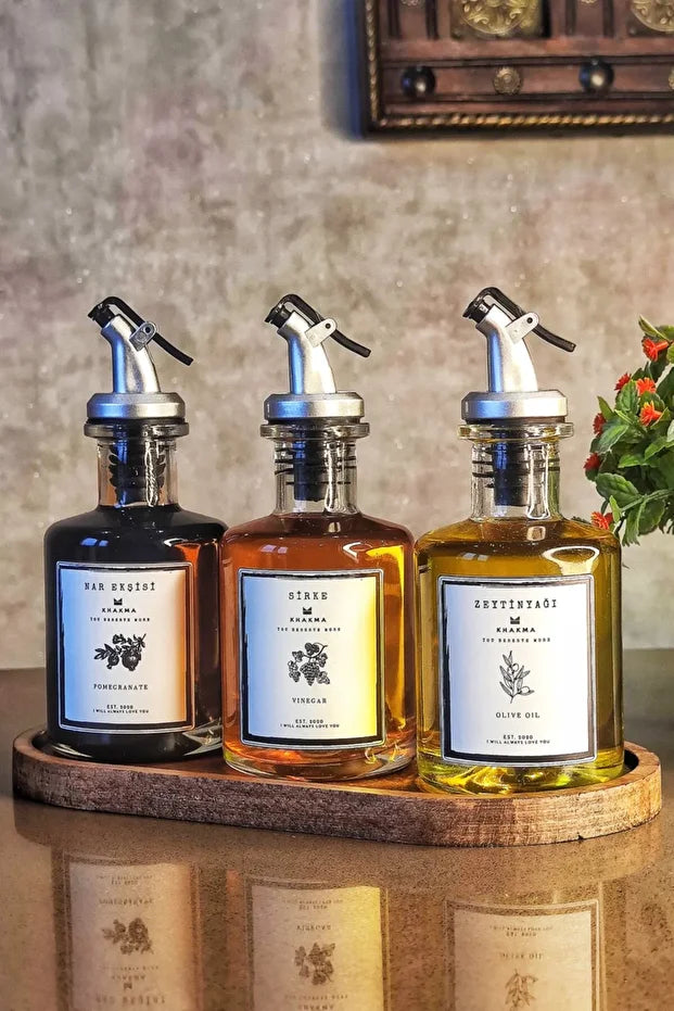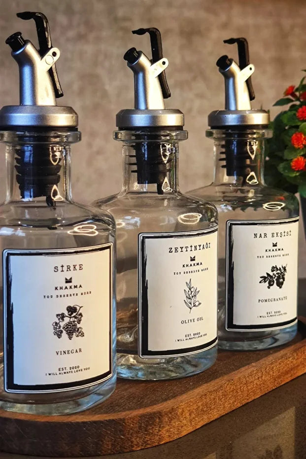 Wooden Stand Transparent 3 Piece 250 ml Oil Can - White Label